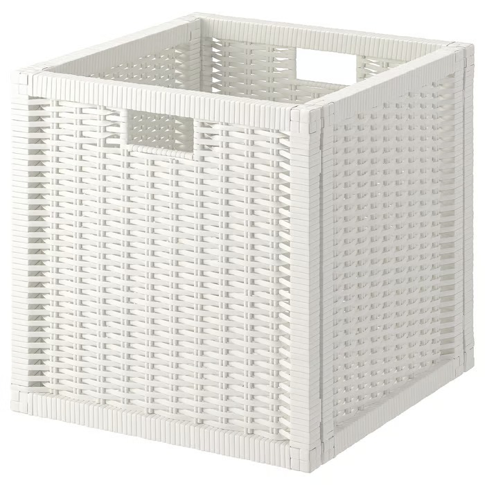 Esta canasta estable tiene muchos usos  y está dimensionada para las estanterías KALLAX, hecha con mimbre natural