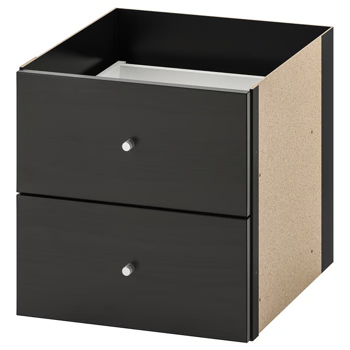 Módulo de 2 cajones con diseño moderno y acabado oscuro. Ofrece buen espacio de almacenamiento y es ideal para mantener tus áreas organizadas con estilo.