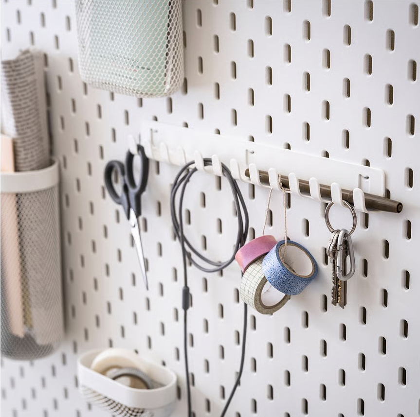 Organízate mejor añadiendo los accesorios SKÅDIS al tablero de clavijas SKÅDIS. Es la solución ideal para tus necesidades y tener a mano las cosas que usas con más frecuencia.